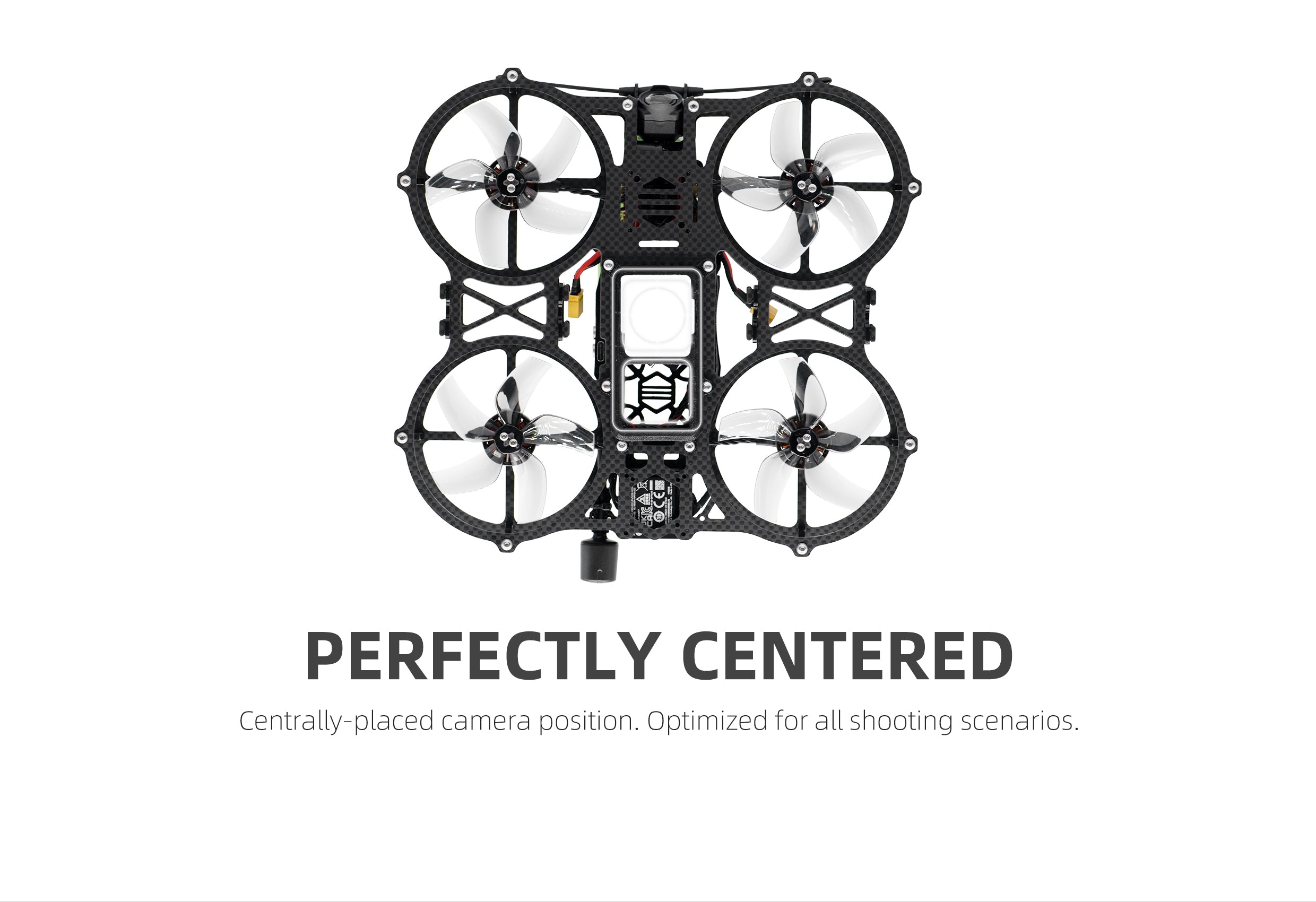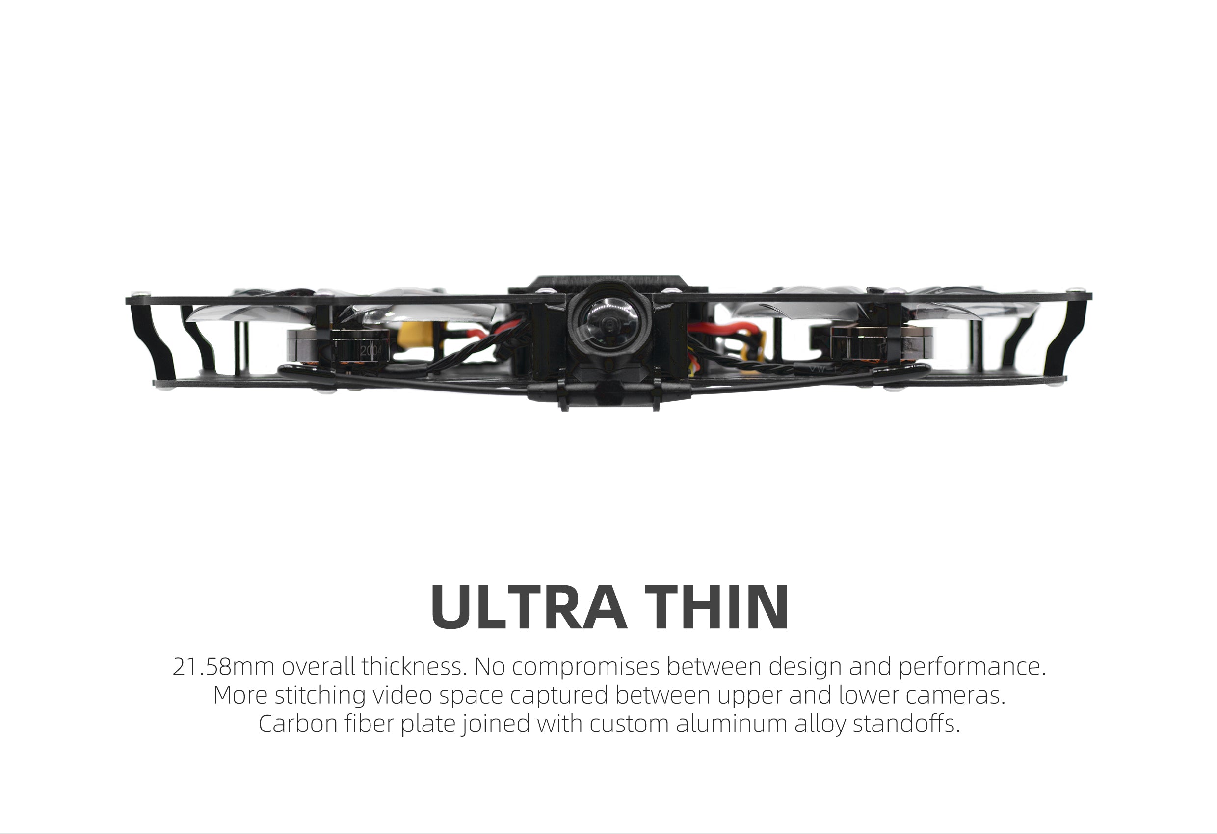In combination with the Insta360 ONE R 360 Camera, the Invisi360 Cinewhoop Drone captures flawless 360 degree footage in a compact and portable package. The frame is only 0.85 inches thick to allow the Insta360 to stitch together images from both sensors without any blind spots.