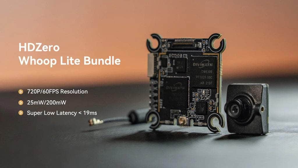 HDZero Nano Lite Camera is designed for feather-lite drones where every gram counts. At a weight as low as 1.5g, combined with the new Whoop Lite VTX at 4.5g with 0.4g dipole antenna enables a world’s-first production digital FPV solution of about 7g. The HDZero Whoop lite Bundle supports 1-3S power input with 25mW/200mW RF power and is capable of recording in 720P/60FPS with super low latency of less than 19ms. What's more, pilots can activate and configure its OSD function on Betaflight Configurator.