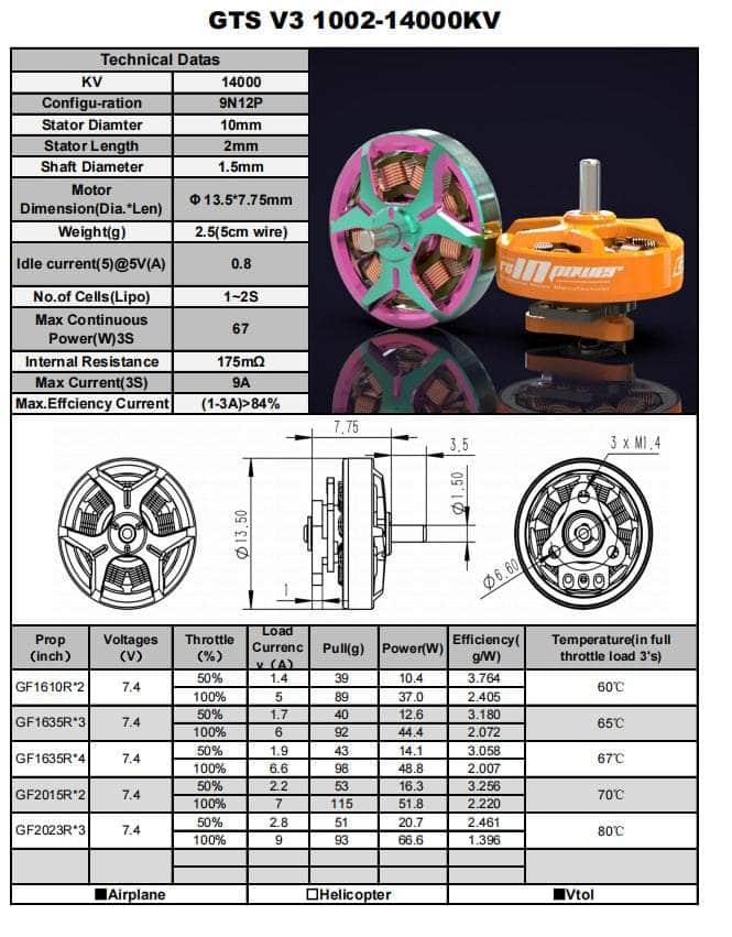 - 1x Rcinpower GTS-V3 1002 14000Kv Motor