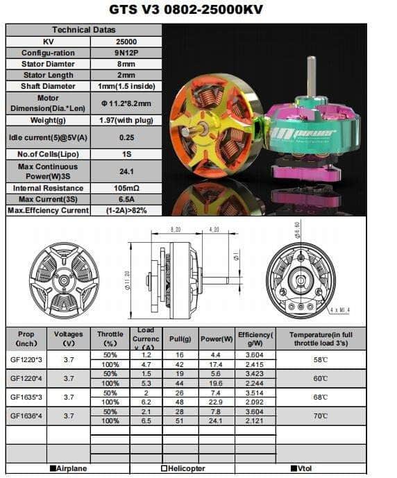 The GTS V3 0802 Motor is a powerful new motor by RCINPOWER! Choose a Kv option: 22000Kv, 25000Kv, 27000Kv.
