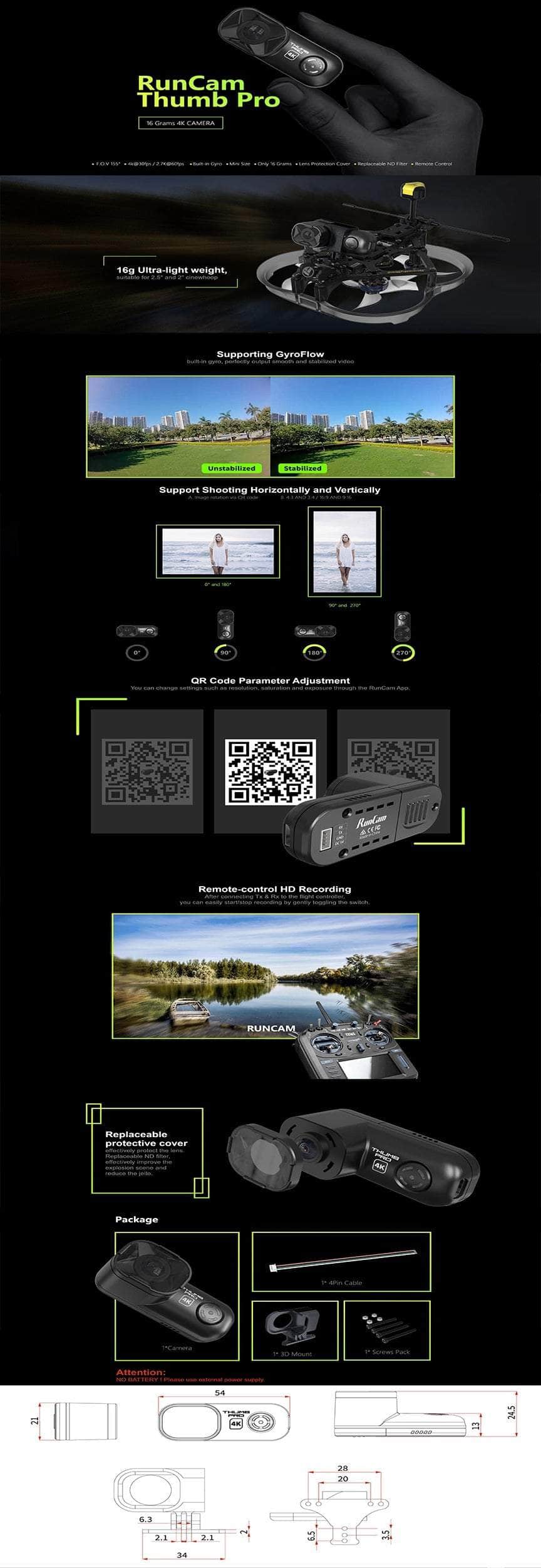 - 1x 1x RunCam Thumb Pro 4K V2 HD Action Camera (NEW VERSION)