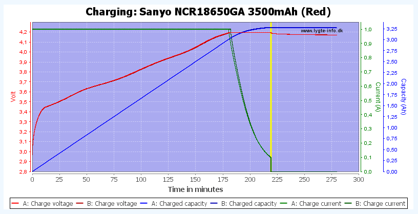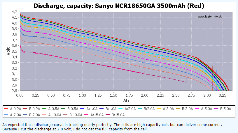 This Sanyo NCR18650GA 3500mAh 18650 Li-Ion Battery 2 Pack has a capacity of up to 3,500 mAh making it one of the highest capacity cells in the 18650 form factor. It also has medium-high discharge/drain capabilities (10A Max.) without any significant capacity fade. These attributes explain why it's an extremely popular cell choice for powering goggles, transmitters and many other devices and applications.
