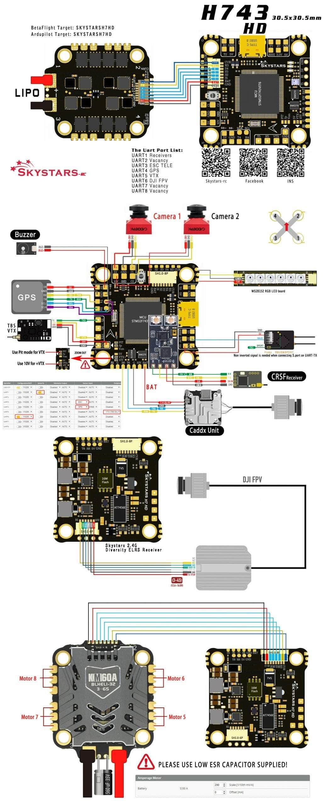 - 1x SkyStarsRC 30x30 Fly Stack H7 Single Gyro FC / KM60 BLHeli-32 45A 3-6S