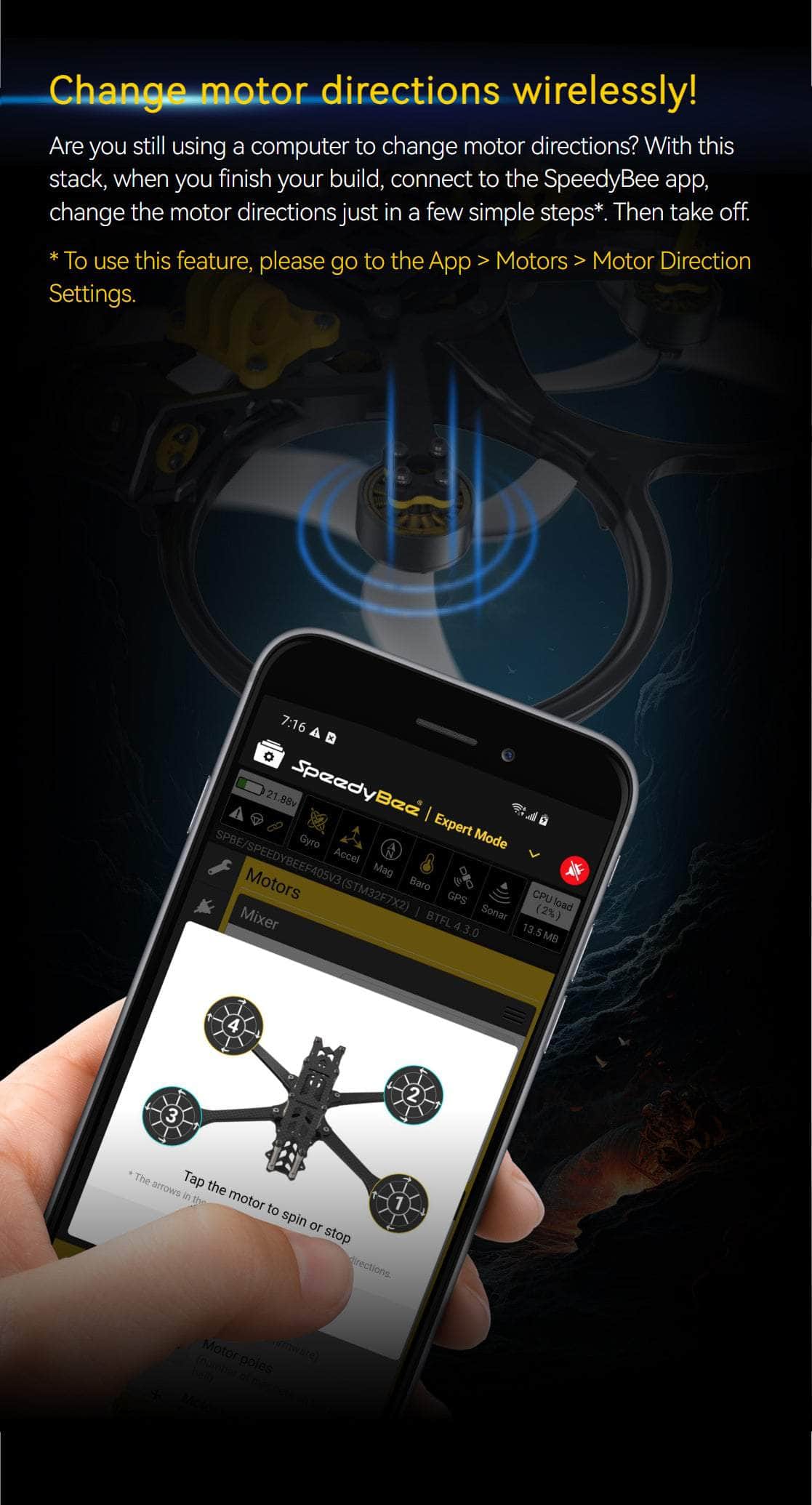 - Wireless Configuration: Full Configuration Supported in the SpeedyBee app