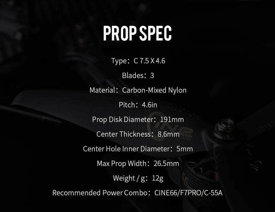 - 2x T-Motor C7.5x4.6 Cine Tri-Blade 7.5' Prop (1 CW, 1 CCW)