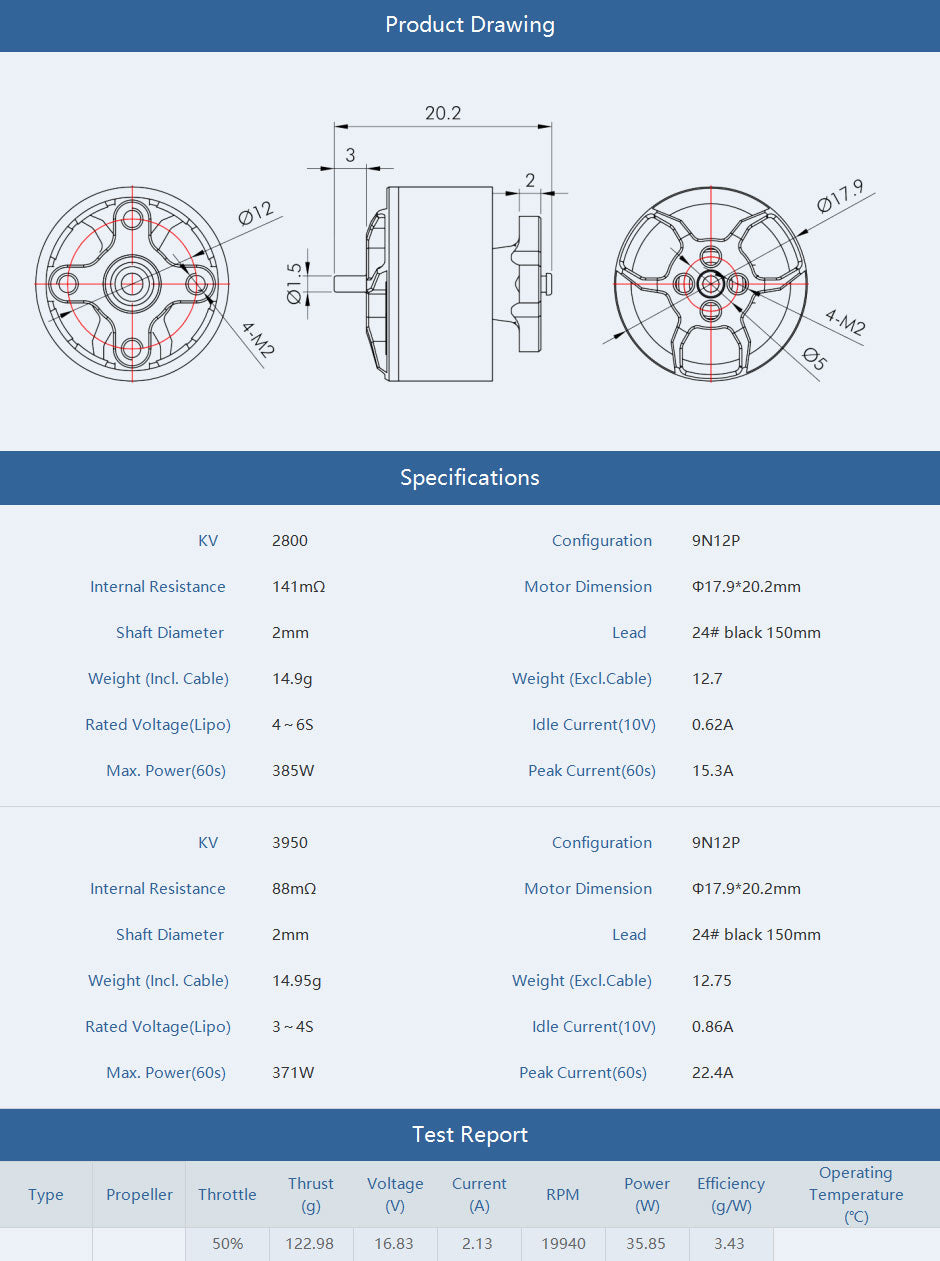- Motor Dimensions: Φ17.9mm x 20.2mm