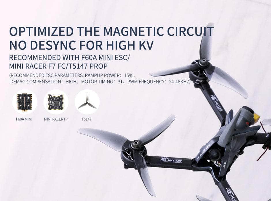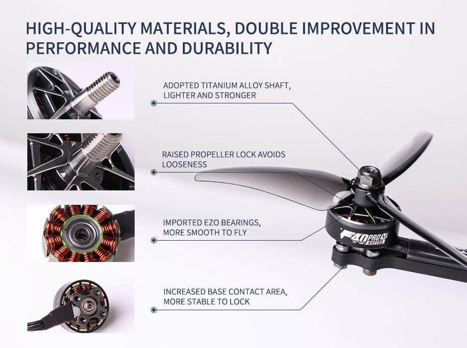 When it comes to having what you need to best your opponents in racing, it's best to choose the motors designed for racing! Made from high-quality materials adopting a titanium alloy shaft for double the improvement in performance and durability. Improvements like the raised propeller locks avoiding looseness, giving you more concrete assurance of you propeller not falling off mid flight. The bearings on the motor are imported EZO bearings for a more smooth flight. The base of the mounting area for the motors has an increased area for more contact to the frame giving a more stable lock, as with motors like these, they ain't coming off, rest assured. Stronger power and better heat dissipation for a lower flight temperature and bolder parameters adjustments to handle those more high-intensity flights in high temperature environments. When it comes to motors for freestyling and racing theses are the motors you want!