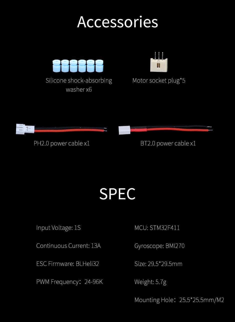- F411 chip is used with high-performance computing speed, making it smoother during flight.