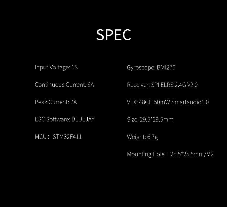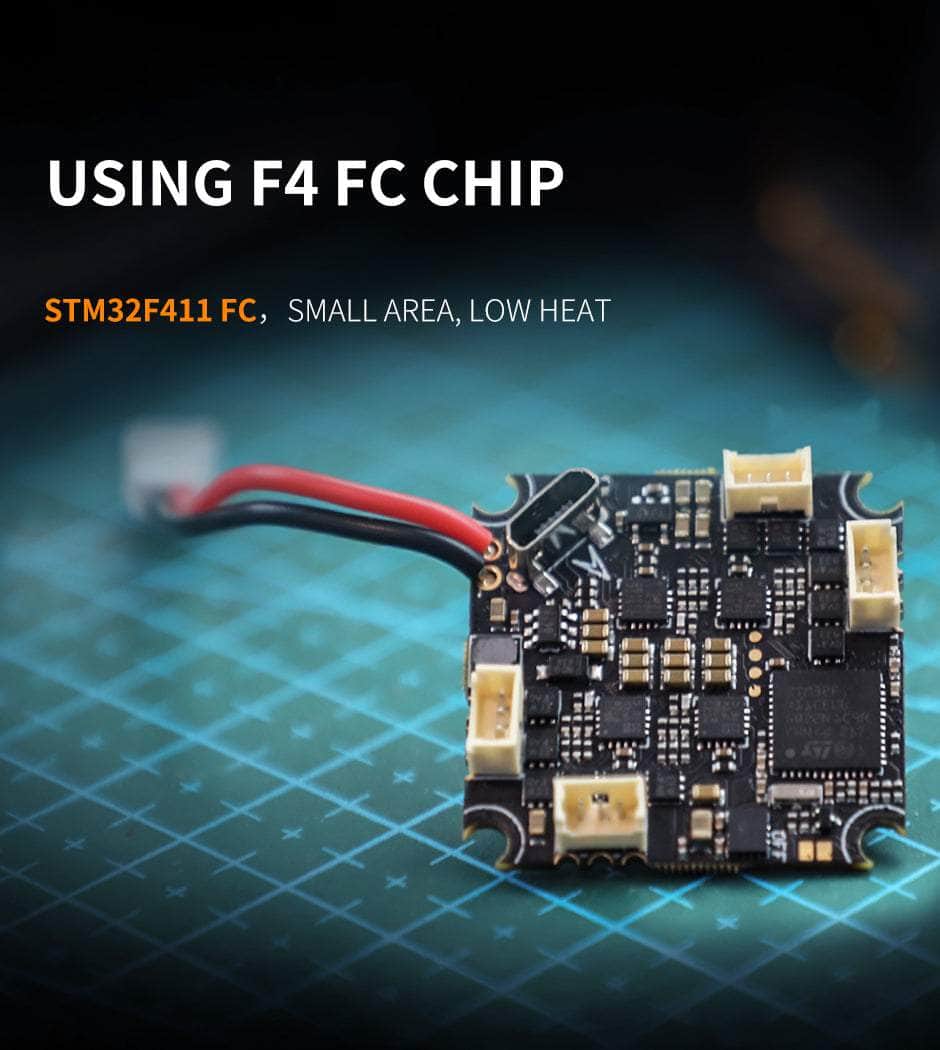 - F411 chip is used with high-performance computing speed, making it smoother during flight.