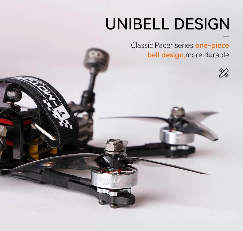 The next generation of the Pacer series motors now with an even lighter unibell 1804 stator design! Perfect for those 3-4' freestyle frames demanding lightweight performance.