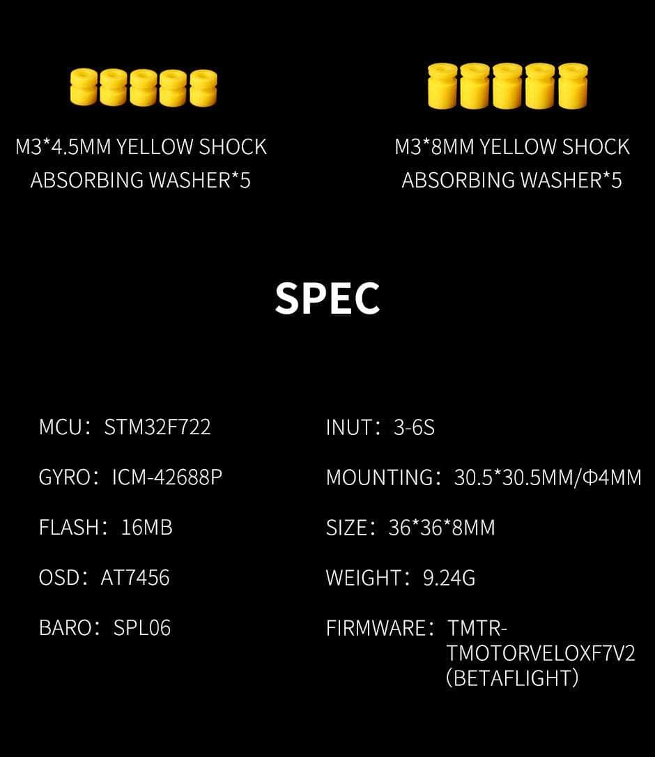 - 1x T-Motor Velox Cine F7 X8 HD 30x30 Flight Controller