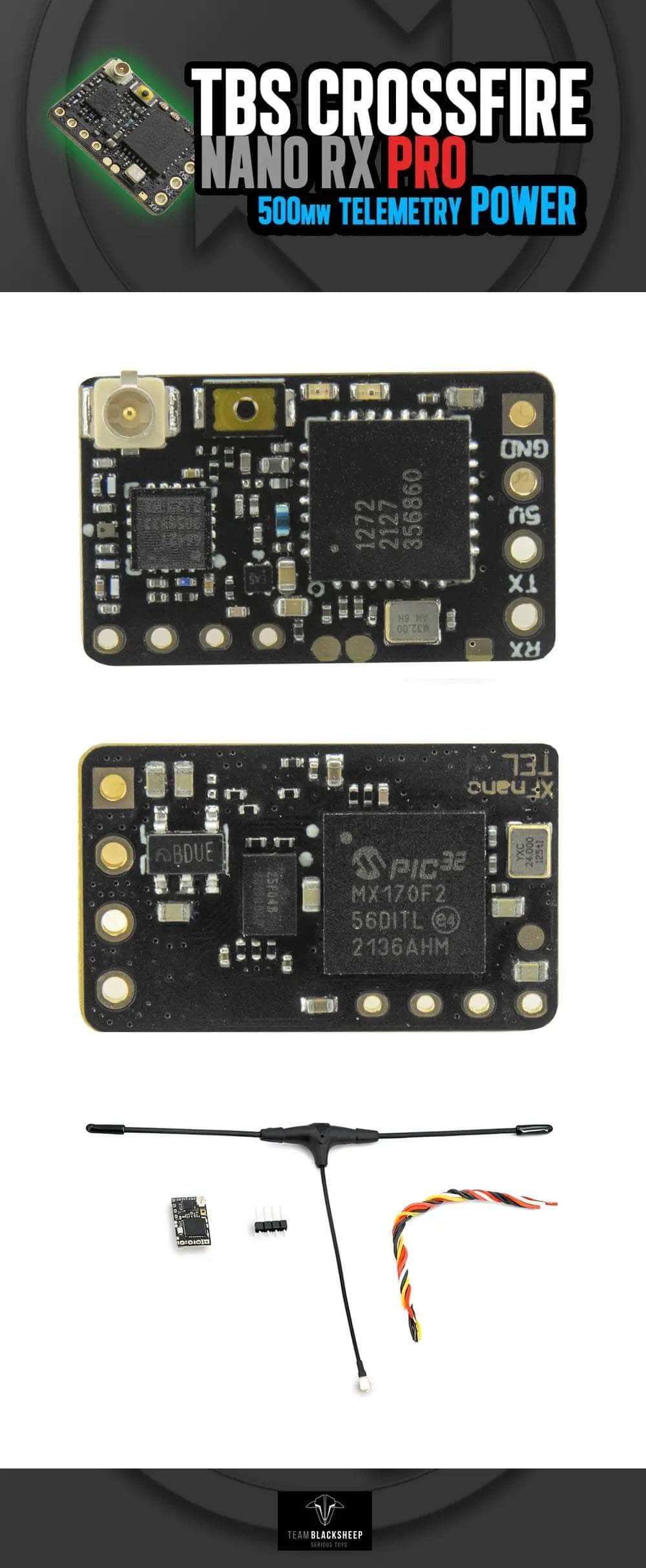 The TBS Crossfire Nano RX Pro is a higher telemetry output power option of the de-facto FPV standard receiver. It packs up to 500mW of output power and will ensure that your 50km flights occur without ever losing telemetry.