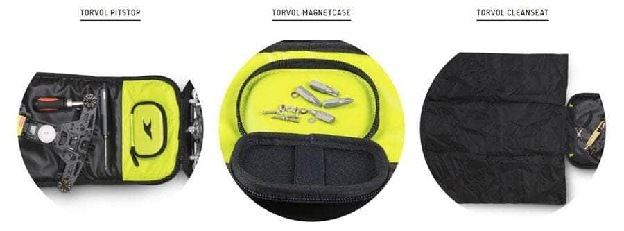 The Torvol Quad PITSTOP V2 Backpack will easily carry four quads and all your FPV gear, such as goggles, transmitters, LiPo’s, tools, and more for any race. It features Torvol’s PITSTOP area, a portable workspace to adjust and modify your quads quickly and effortlessly. Torvol’s CLEANSEAT prevents you from getting dirty knees while doing so. The backpack includes multiple organizer pockets, providing ample space for smaller FPV gear and personal belongings. At the same time, larger items like a tripod and a foldable chair can be strapped to the outside.