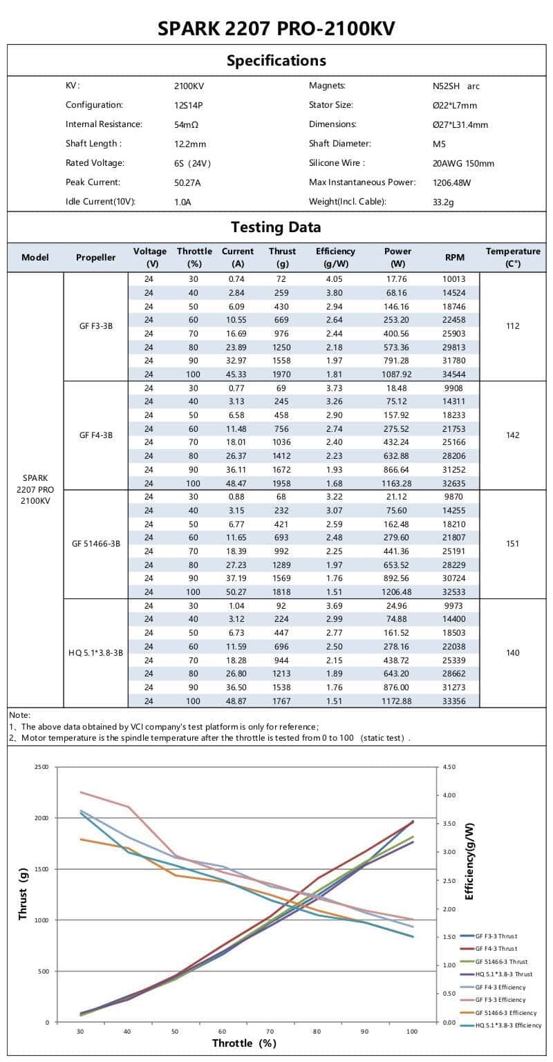 - 1x VCI Spark 2207 Pro 2050Kv Motor